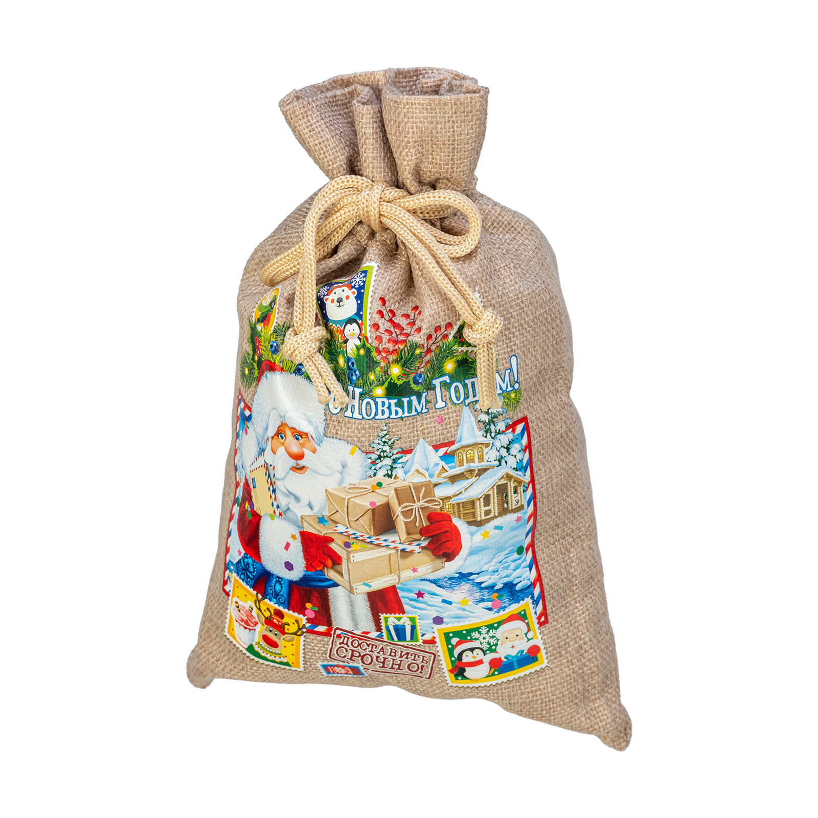 Интересный вариант новогоднего подарка – « Мешок Морозное утро». Отлично подойдет на подарок в 2026 году с символом Лошадь. Внутри такого презента находится кондитерский набор весом 500 граммов.