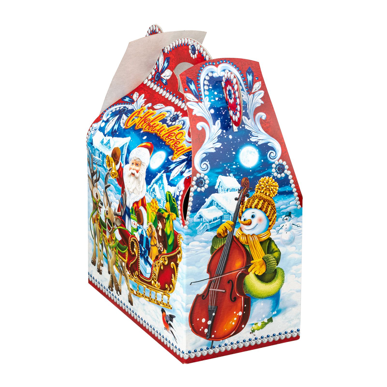 Подробнее о доставкеПопулярный подарок в нашей коллекции сладких новогодних подарков «Саквояж». Это яркая и красочная картонная упаковка в форме сумочки. Сверху имеются прорезные ручки для переноски. Необычный дизайн упаковки привлекает внимание. На оборотах короба изображен Дед Мороз на санях, который готовится развозить подарки, на боковой части Снеговик, который играет на музыкальном инструменте. В кондитерском наборе весом 500 граммов вкусные конфетки с разными начинками, свежайшие десерты, хрустящие печенья и вафли, пирожные. Данный подарок прекрасно подойдет для дарения детишкам младшего и среднего возраста, а также для организаторов новогодних мероприятий. Вся продукция сертифицирована и полностью безопасна.