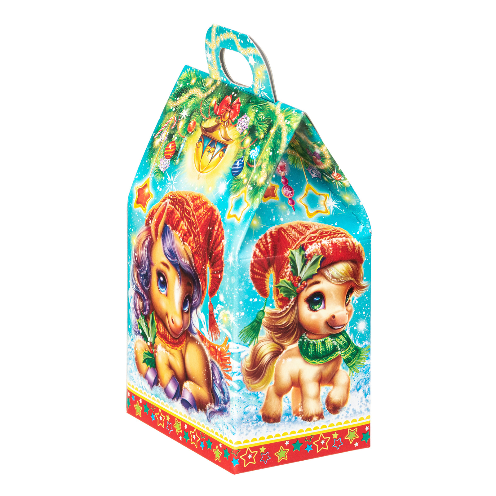 Несмотря на небольшой размер, новогодний сладкий подарок “Шалунишки” способен вызвать неподдельный восторг у маленьких сластен. В его состав входит 200 грамм разнообразных вкусных сладостей с мягкой начинкой и небольшой памятный сувенир-магнитик. Все это бережно помещено в небольшую картонную коробочку с изображением символов наступающего года - милых волшебных лошадок. Этот небольшой набор станет прекрасным выбором, если вы ищете новогодние сладкие подарки для утренника в детском саду - малыши точно останутся довольны!