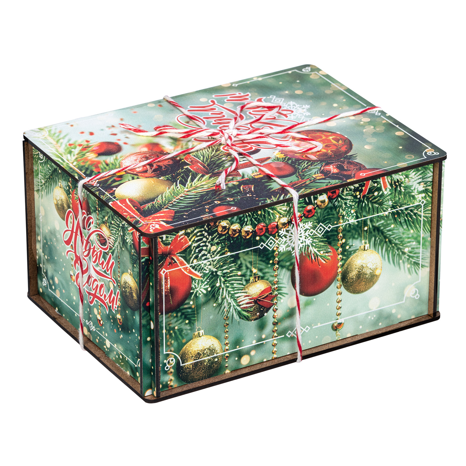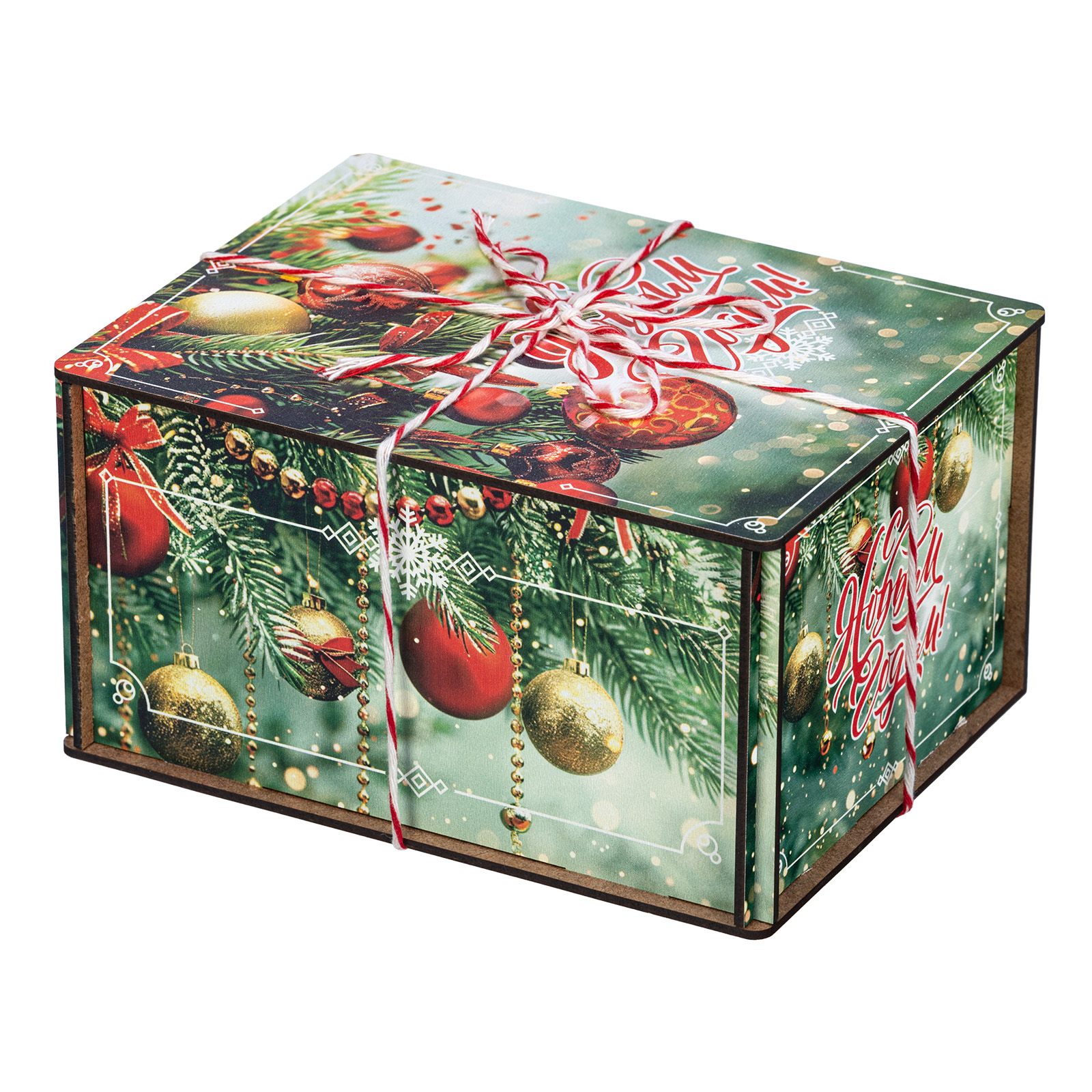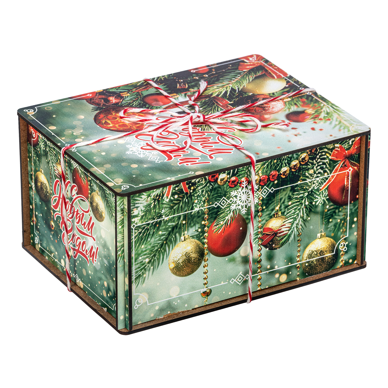 Яркая привлекательная упаковка и разнообразное вкусное наполнение - именно так можно описать этот подарочный набор. Килограмм самых разнообразных сладких угощений от ведущих кондитерских фабрик бережно упакован в  яркую деревянную коробочку, пышно украшенную рисунком роскошной еловой ветки. Сверху подарок перетянут яркой ручкой-шнурком, которая добавляет еще больше торжественности этому набору. Такой подарок прекрасно подойдет для поздравления сластены любого возраста: его можно смело выбрать как дня новогоднего праздника в детском учреждении, так и для корпоратива в крупной компании - восторженные отзывы гарантированы.